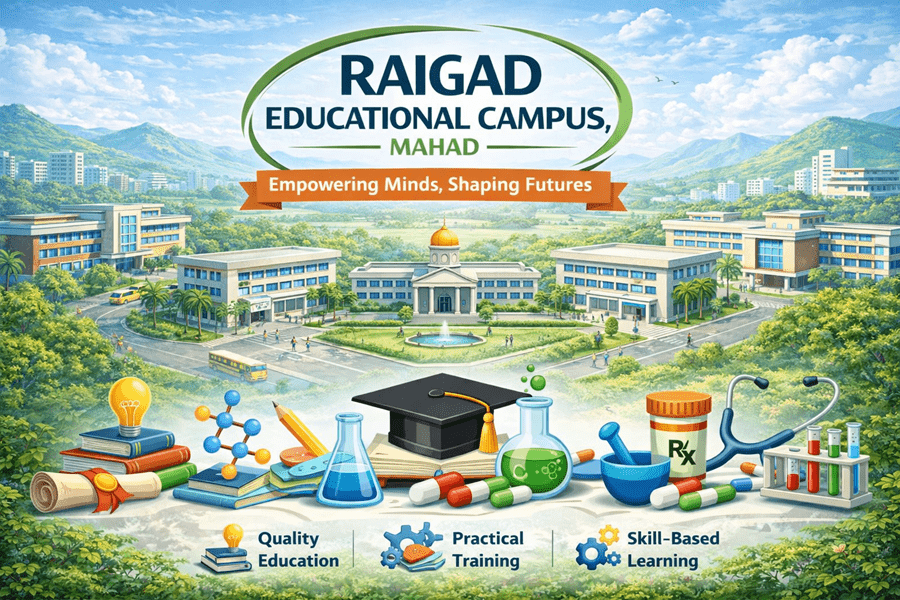 Raigad Educational Campus, Mahad is a premier centre of higher education dedicated to providing quality academic programmes and career-oriented learning opportunities. Established with the vision of empowering students through knowledge, skill development, and innovation, the campus has grown into a multi-disciplinary educational hub offering programmes in Pharmacy, Agriculture, Biotechnology, Food Technology, and Vocational Education. At Raigad Educational Campus, we believe education should go beyond classroom teaching. Our academic approach combines theoretical knowledge with hands-on practical training, industry exposure, and experiential learning. This helps students develop strong professional skills, critical thinking abilities, and confidence required to succeed in today’s competitive world. We continuously upgrade our teaching methodologies and curriculum to align with evolving industry and professional standards.